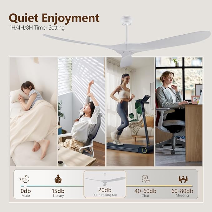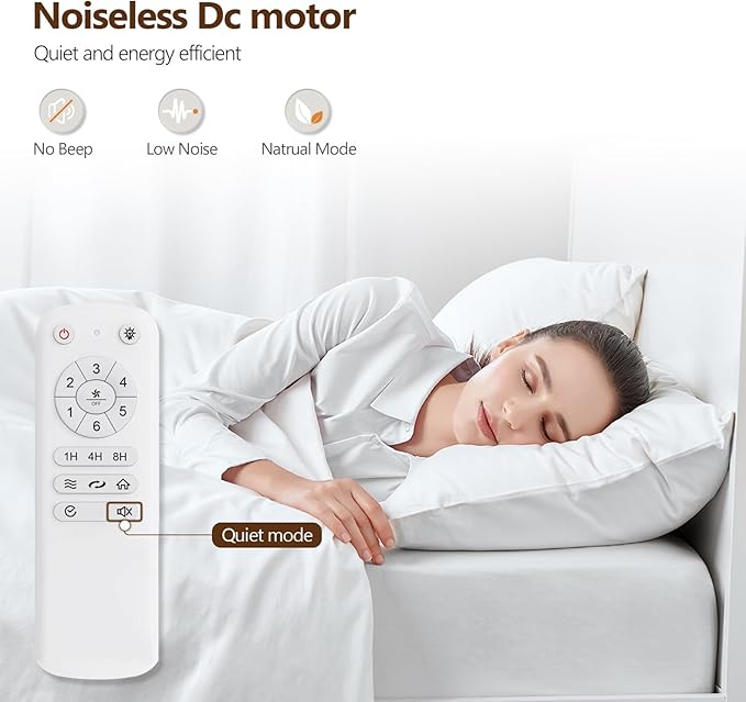 - 【Quiet Reversible DC Motor】Reversible DC motors allow you to optimize airflow for different seasons and preferences. In summer, the forward direction creates a cool breeze, while in winter, the opposite direction helps circulate warm air throughout the room. Not only that, its extremely low operating sound allows you and your family to sleep peacefully