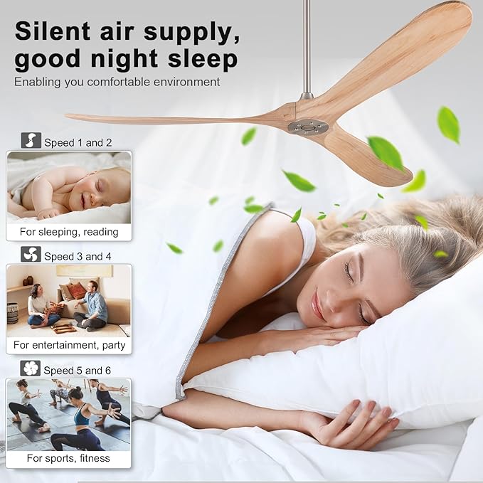 - 【Solid Wood Blades】This indoor/outdoor ceiling fan uses 3 blades made of 100% high-quality natural solid wood. Compared with ABS, the surface of solid wood blades has formed a delicate and smooth texture. The unique texture and the comfortable woody fragrance provide far better visual and tactile experience than other fan blade materials. It is carefully crafted for users pursuing ultimate quality and fashionable style.