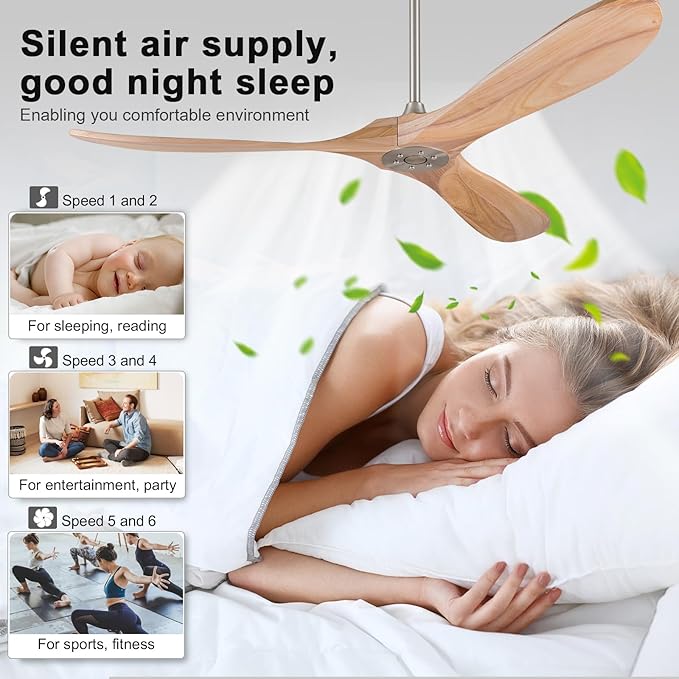 - 【Quiet Reversible DC Motor】Reversible DC motors allow you to optimize airflow for different seasons and preferences. In summer, the forward direction creates a cool breeze, while in winter, the opposite direction helps circulate warm air throughout the room. Not only that, its extremely low operating sound allows you and your family to sleep peacefully