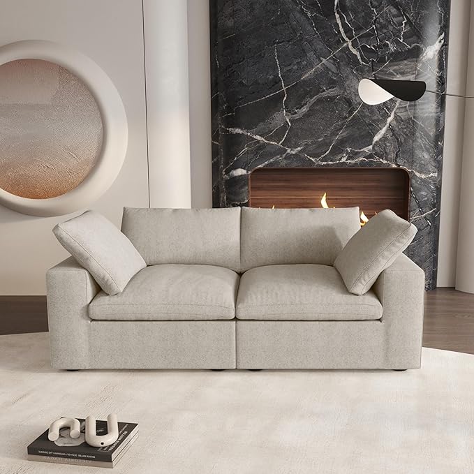 - 👪【Epitome Of Comfortable & Elegant】The Cloud Modular Sofa is filled with sponge and down feathers on the inside, providing a soft and comfortable feel, just like sitting on a cloud. Large sitting width, large sitting depth. Plenty of room to stretch out and relax. Whether you want to relax or enjoy a good read, this sofa will offer you an incredibly comfortable experience.