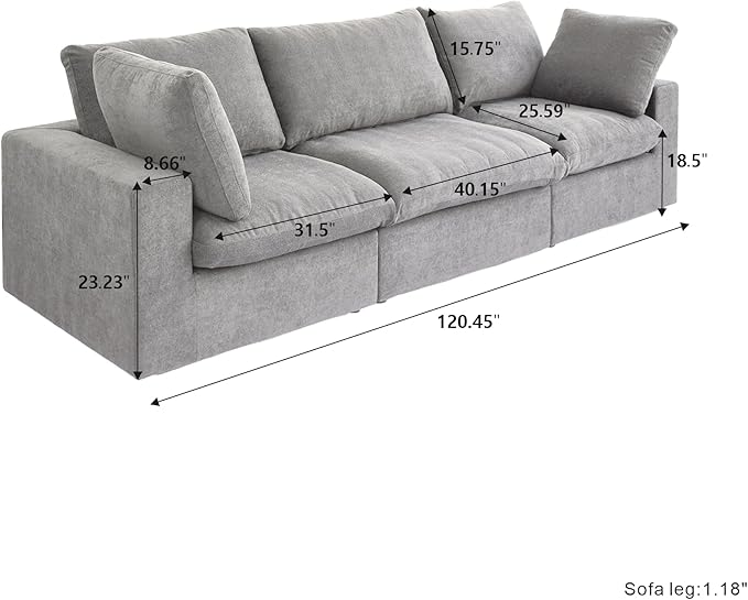 - 👪【Including】2 Seater Sofa + 1 Middle Sofas . 2 Pillows. Overall Size: 120.45 "W x40.15 "D x 23.23 "H. Sofa legs: 1.18" H. This item's simple and generous design, with coordinated color schemes, is suitable for various decoration styles.There are legs and Connect buckles