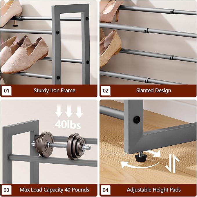 - Super Sturdy Frame: Made of stainless steel pipes, each shoe organizer can hold up to 40 pounds, making it durable and long-lasting