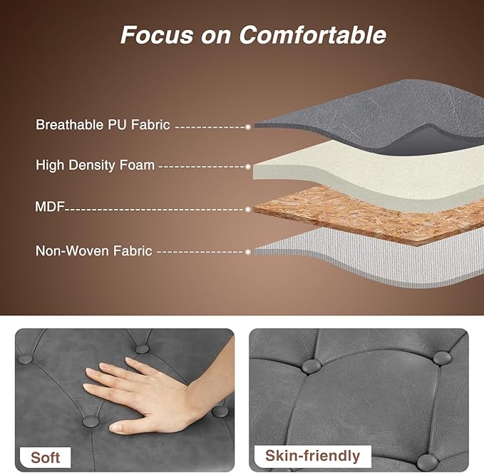 - Mid Century Retro Design: Our bed benche feature unique rolled armrests and rivet trim, tufted buttons on the seat surface and diamond shaped stitching, which keeps the surface leather tightly fitted to the interior foam and not easily deformed