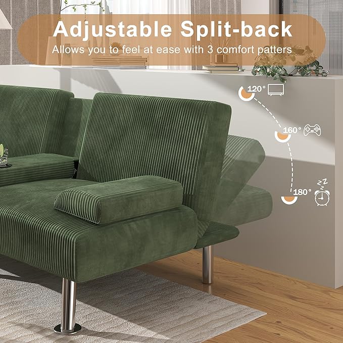 - Premium Quality: Crafted from premium corduroy and reinforced with chrome-plated metal legs, our sofa bed combines durability with thoughtful design, including removable armrests for added convenience.