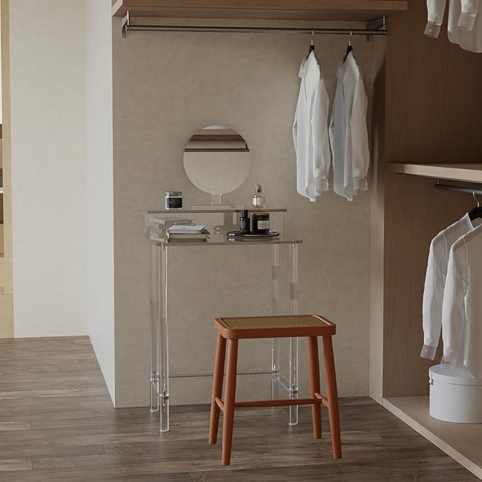 - Superior Crafts - Made entirely of high-quality clear acrylic, this small vanity desk feels smooth touching sense, and durable. Its unique material properties make it easy to maintain and clean daily, keeping the vanity bright and clean as new.