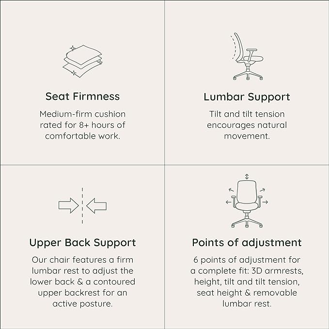 - ADJUSTABILITY: The Branch Verve Chair offers six points of adjustment including tilt and tilt lock, seat height, seat depth, armrest height, lumbar height, and tilt tension, making it an ideal executive desk chair.