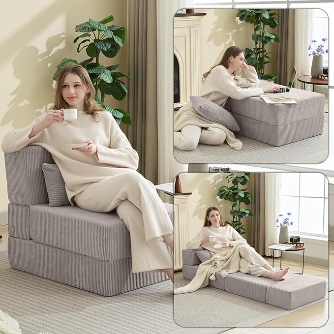 - Multifunctional Folding Sofa Bed: folding sofa bed has 8 forms to show, can be quickly converted into a folding chair bed, recliner or folded into a guest sleeper mattress, to meet your different needs. Foldable design to save your space, folded up during the day into a comfortable sofa, the night unfolded is a very comfortable bed, suitable for reading, watching TV, playing video games, yoga or nap.