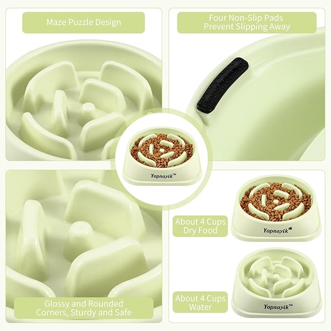 - DEVELOPING GOOD EATING HABITS: Our slow feeder bowl stands out due to its eco-friendly composition, being made entirely from pp materials that contribute positively to environmental sustainability. The design incorporates a ridge-like pattern that mimics natural obstacles, making every mealtime a brain-engaging hunt. The texture of the bowl is designed to massage the gums while eating, which helps in maintaining oral health. Suitable for both dry and wet food.