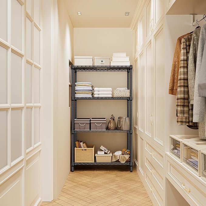1000 lbs 4 Tier Shelf Metal Storage Shelves Shelving Wire Rack Heavy Duty Closet Organizers for Garage Kitchen Bathroom Laundry Black 13.8" D x 35.4" W x 59.5" H