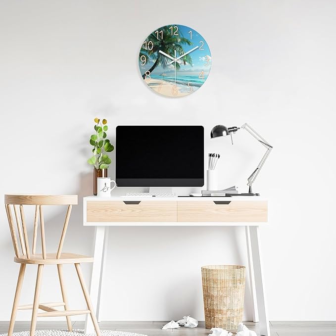 - 【SILENT NON-TICKING】The Summer Hawaii analog wall clock features high-quality quartz movements that ensure precise timekeeping and a completely silent operation. Enjoy a peaceful atmosphere with this ultra-quiet analog clock, designed to eliminate any ticking noise.