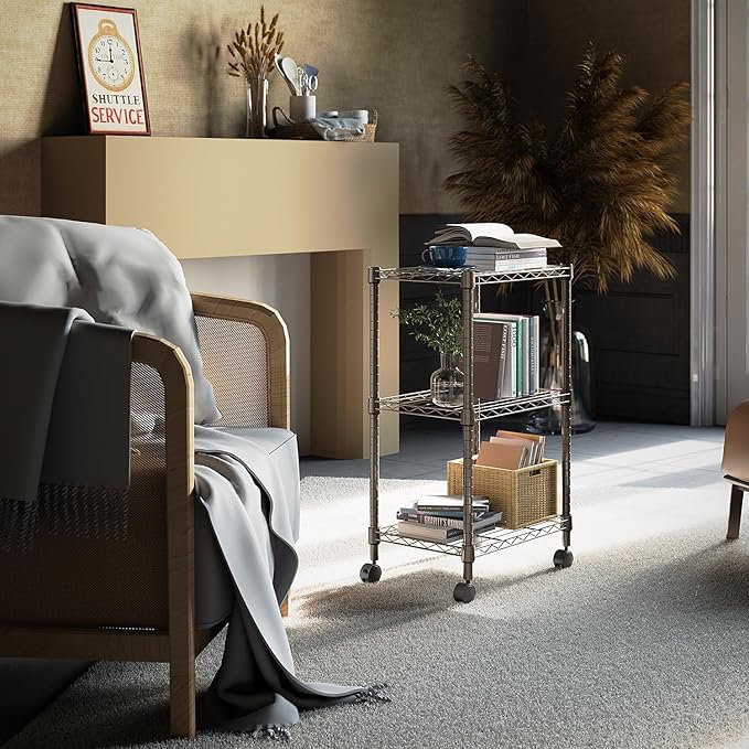 3 Tier Shelf Metal Storage Shelves Wire Rack Closet Organizers with Wheel for Garage Kitchen Bathroom Laundry Brown 11.8" D x 17.7" W x 29.8" H