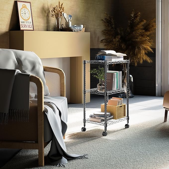 3 Tier Shelf Metal Storage Shelves Wire Rack Closet Organizers with Wheel for Garage Kitchen Bathroom Laundry Black 11.8" D x 17.7" W x 29.8" H