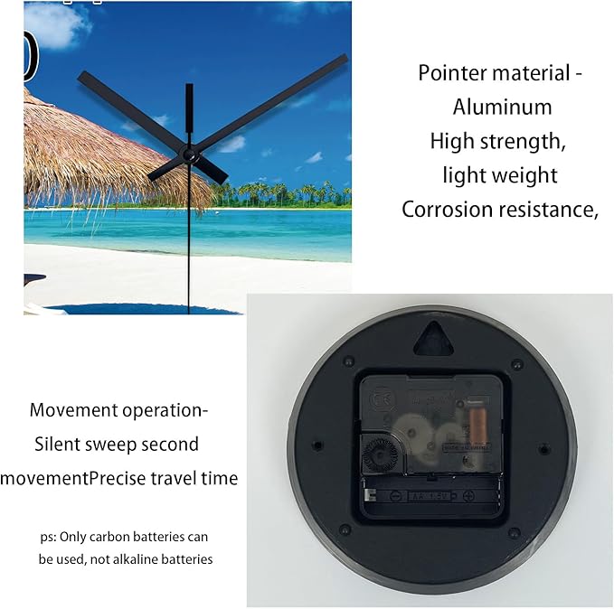 - 【SIZE & MATERIAL】14 Inch beach theme glass wall clock is made of HD tempered glass,which does not fade or deteriorate under sunlight and rain, is waterproof, moisture-proof, and is easy to clean and maintain.