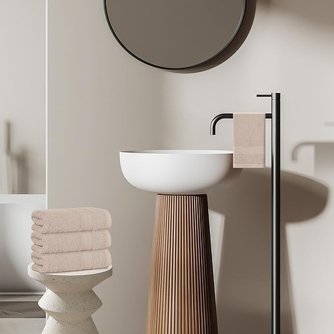 BOUTIQUO Ultra Soft Cotton 6 -Piece Hand Towel Set 16x24 Inch, Ideal for use in Bathroom, Kitchen, Gym, Spa & General Cleaning, Compact & Lightweight Multi Purpose Hand Towels - Tan