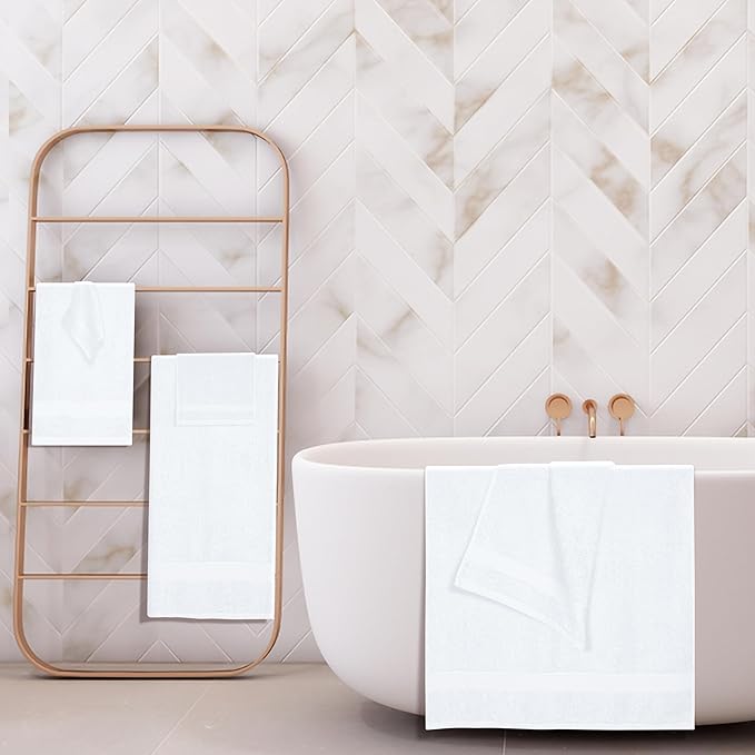 BOUTIQUO 6 Pack Cotton Towel Set, Contains 2 Bath Towels 27x54 inch, 2 Hand Towels 16x24 inch & 2 Wash Coths 12x12 inch, Ideal Everyday use, Ultra Soft Compact & Lightweight - White