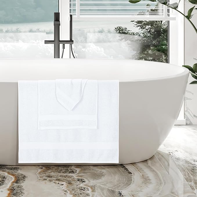 BOUTIQUO Ultra Soft 3 Pack Cotton Towel Set, Contains a Bath Towels 27x54 inch, a Hand Towels 16x24 inch & a Wash Coths 12x12 inch, Ideal Everyday use, Compact & Lightweight - White