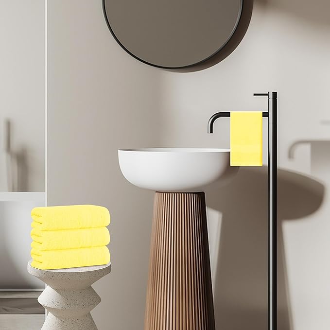BOUTIQUO Ultra Soft Cotton 6 -Piece Hand Towel Set 16x24 Inch, Ideal for use in Bathroom, Kitchen, Gym, Spa & General Cleaning, Compact & Lightweight Multi Purpose Hand Towels - Lime Yellow