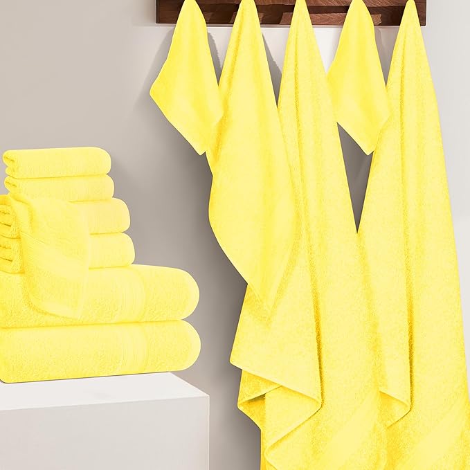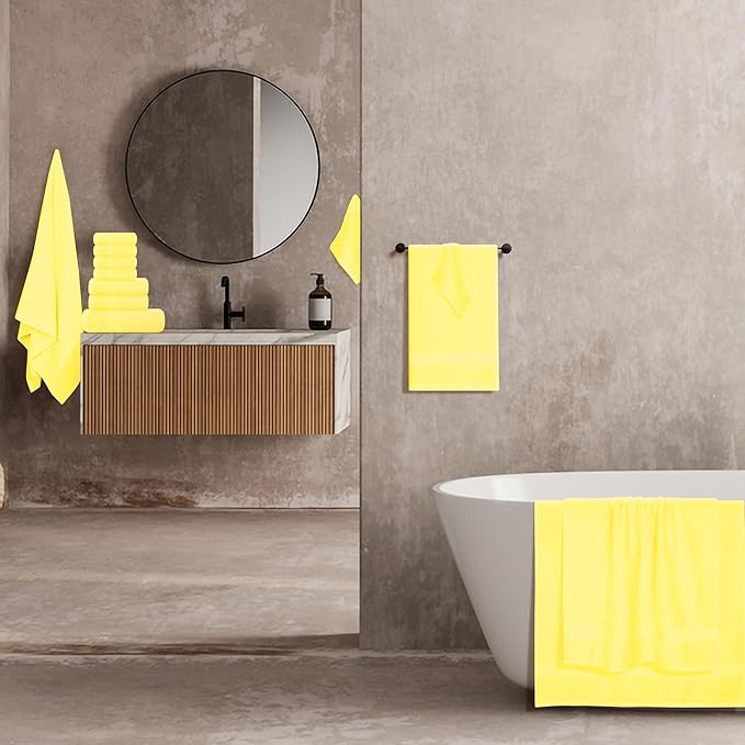 BOUTIQUO 24 Pack Cotton Towel Set, Contains 6 Bath Towels 27x54 inch, 6 Hand Towels 16x24 inch & 12 Wash Coths 12x12 inch, Ideal Everyday use, Ultra Soft Compact & Lightweight - Lime Yellow