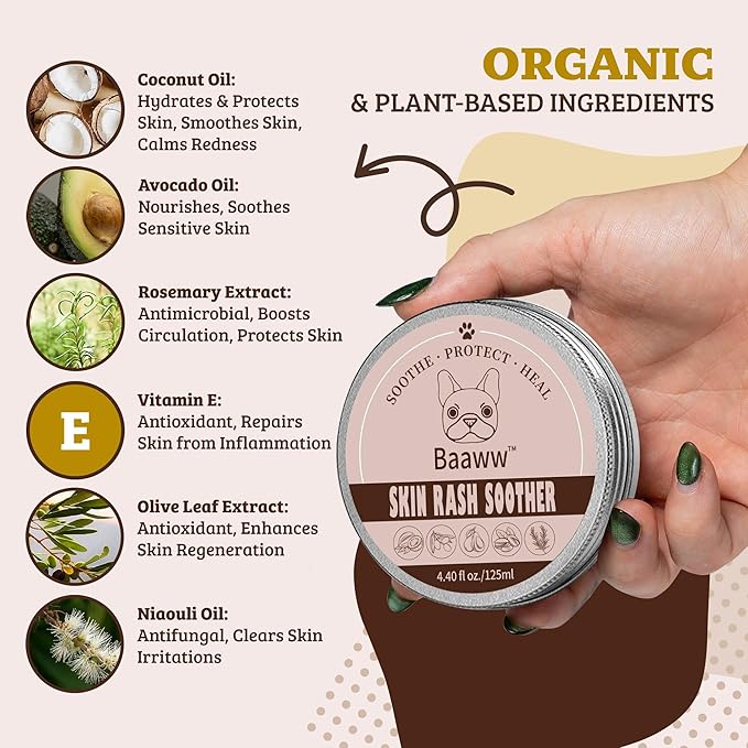 - DOG SKIN CARE ESSENTIAL: Baaww’s dog skin soother nourishes dry, itchy skin. This dog balm for skin irritation is a must-have dog skin care product, providing lasting comfort and protection for your pet’s skin.