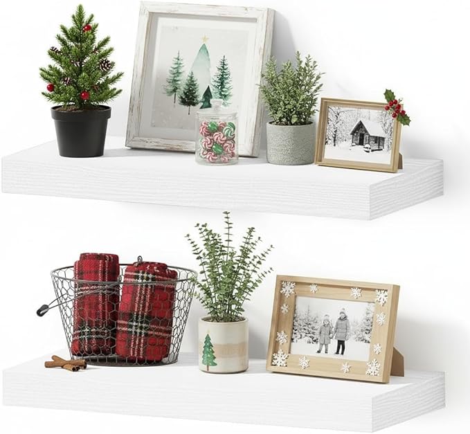 - Well-designed Floating Shelves - The rustic style floating shelves combining both practicality and style. These shelves offer a generous deeper and thicker surface, perfect for organizing daily sundries without taking up valuable floor space. The various of selected colours finish adds a cozy, natural element,display your art pieces on the wall to decorate your home, and make it full of aesthetic flare.