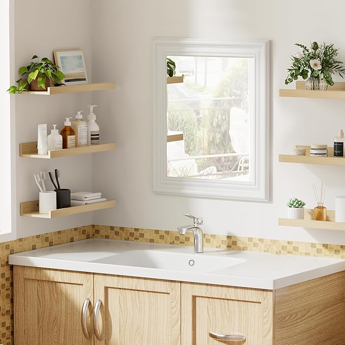 upsimples Floating Shelves for Wall, Wall Shelves for Decor Storage Set of 6, Wall Mounted Wood Shelf for Bedroom, Living Room, Bathroom, Kitchen, Picture Ledge Shelves, Natural