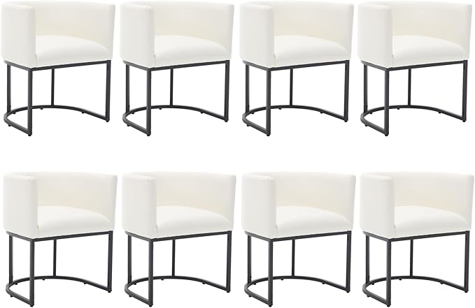 Faux Leather Dining Chairs Set of 8 Modern Barrel Arm Chairs with Black Metal Frame, Upholstered Kitchen Chairs 18.5" Wide Accent Chairs for Living Room Dining Room Restaurant, White