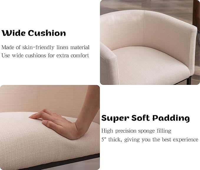 Linen Fabric Dining Chairs Set of 2 - Modern Barrel Arm Chair With Black Frame, Upholstered Kitchen Seat 18.5" Wide for Living Room, Restaurant, Cream