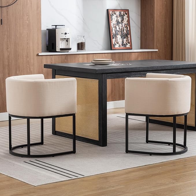Linen Fabric Dining Chairs Set of 6 Modern Barrel Arm Chairs with Black Frame Upholstered Kitchen Chairs 18.5" Wide Accent Chairs for Living Room Dining Room Restaurant, Cream