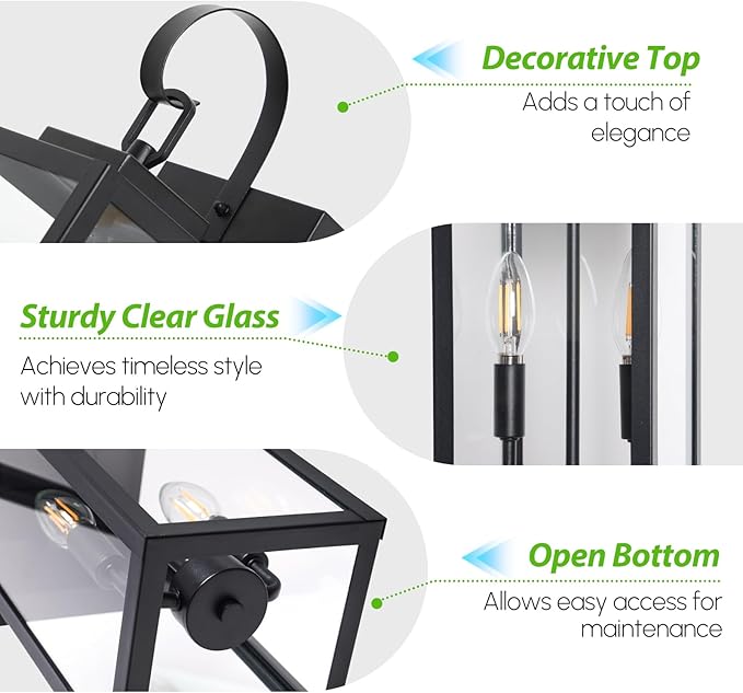 - E12 Base Bulbs Required: This outdoor light for house is compatible with a variety of E12 base bulbs, such as LED, CFL, incandescent, and halogen bulbs, providing flexibility in choosing the right type of lighting for your needs. Please ensure that the wattage of the selected bulb does not exceed 40W