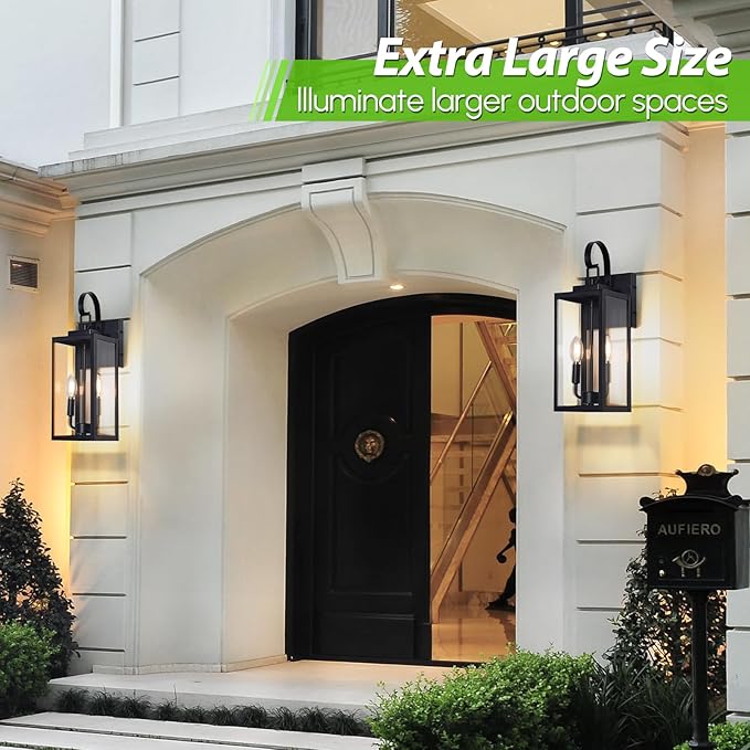 - Large Size & Wide Application: Measuring 18 inches in height with 2 light sources, this porch light offers expansive lighting coverage, perfect for larger spaces. Its modern and elegant design effortlessly complements any decor, making it ideal for various settings including garages, porches, patios, front doors, hallways, entryways, corridors, backyards, and any indoor or outdoor spaces. Enhance the atmosphere and visual appeal of your surroundings with this exterior light fixture