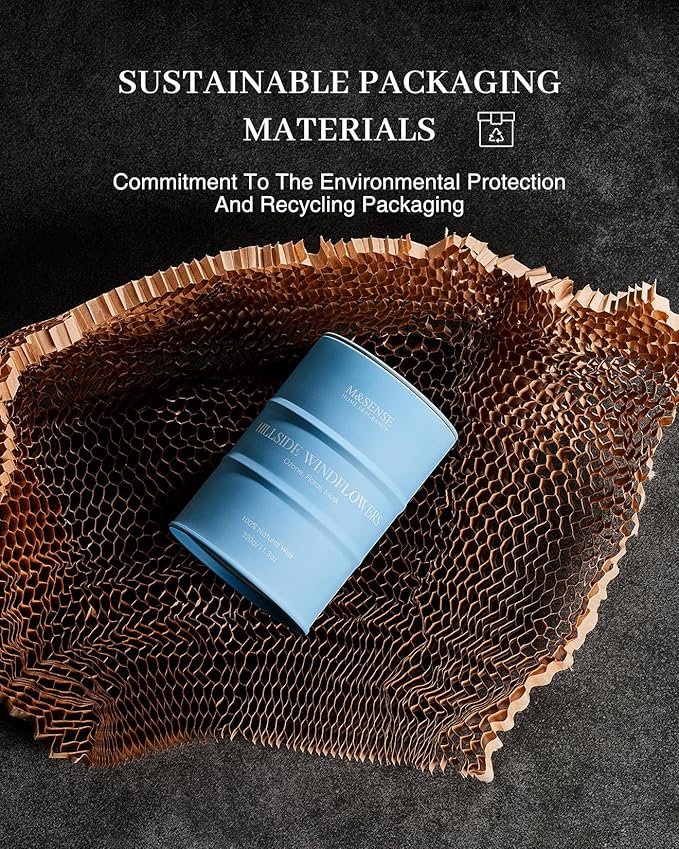 - š Sustainable Material - M&SENSE candles are all crafted with the finest and most natural ingredients. Using high-end vegetable wax and unbleached cotton wicks in a reusable and recyclable tin. Packaged in recycled honeycomb paper and cardboard box for a more sustainable future.