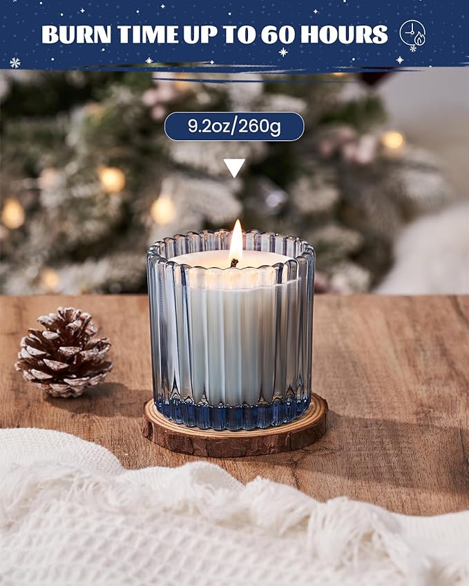M&SENSE Blue Soy Candles for Home Scented, Cider Amber Christmas Candles Non Toxic, 9.2oz Natural Organic Clean Burning Up to 60 Hours, Christmas Home Decor Gifts for Men