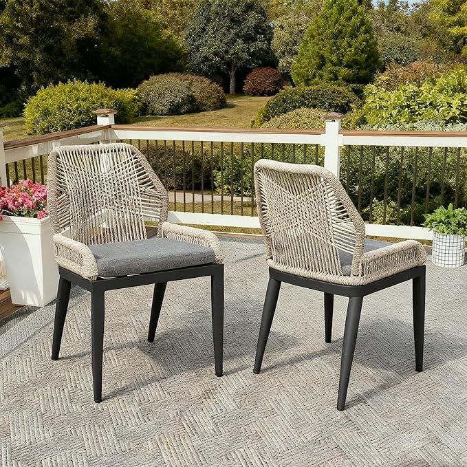 PURPLE LEAF Patio Dining Chair Set 2 Pieces Aluminum Modern Furniture Seating for Garden Kitchen Porch Outdoor Wicker Dining Chairs with Cushions, Dark Grey