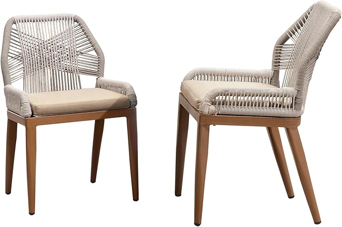 PURPLE LEAF Patio Dining Chair Set 2 Pieces Aluminum Modern Furniture Seating for Garden Kitchen Porch Outdoor Wicker Dining Chairs with Sunbrella Cushions, Deep Teak