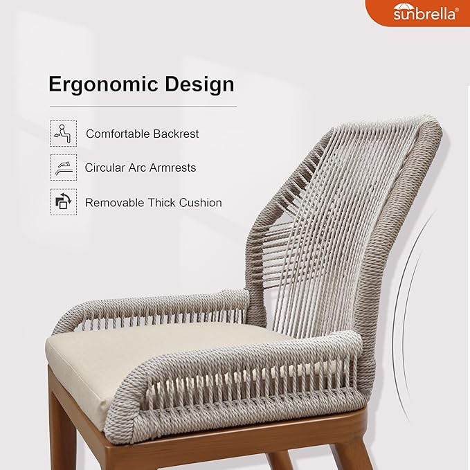 - Modern Boho Style: The combination of a khaki cushion and wood grain frame is both understated and natural, effortlessly pairs with various table styles, adding warmth and sophistication to your indoor and outdoor spaces.