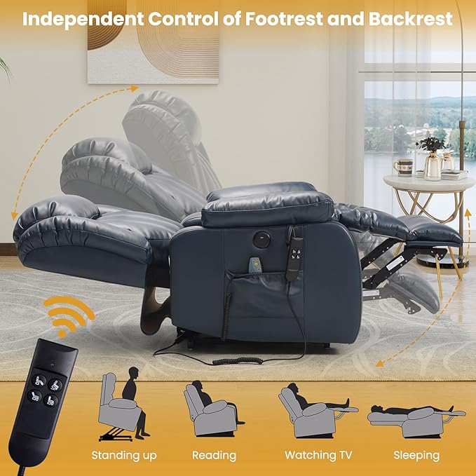 - Power Lift Assistance- Experience effortless adjustment with independent 90°-180° backrest & footrest control. The lift chair function gently raises seats to assist seniors in standing without back/knee strain. Enjoy smooth reclining at any angle. Ultimate convenience: remote-controlled recliner adjusts with one button press.