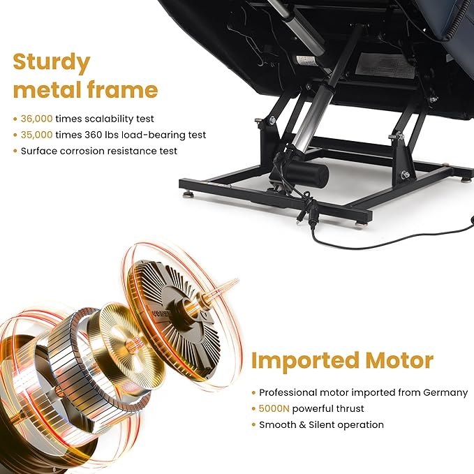 - Infinite Position - Independent 90°-180° Infinite Position Recliner - Unlock total comfort with dual-motor technology allowing separate backrest & footrest adjustment. Achieve zero-gravity relaxation, bed-like flat recline, or upright TV viewing. Features an extra-long footrest for enhanced leg support—ideal for tall users, seniors, and anyone seeking adjustable recliner chairs for elderly.