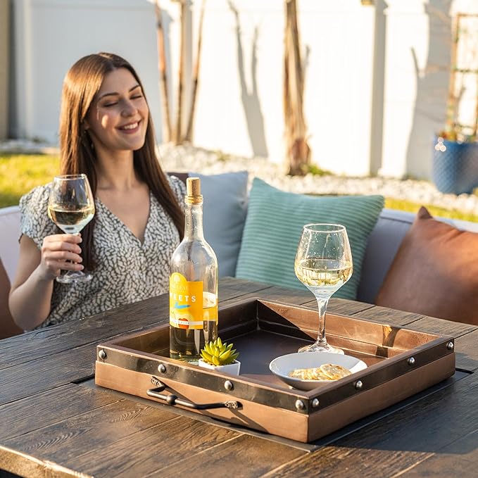 - š EFFORTLESS TRANSPORT ā Featuring sturdy iron handles, this 16" x 16" x 2.5ā rustic wood ottoman tray is easy to carry from kitchen to table, ensuring seamless service during gatherings or daily routines.