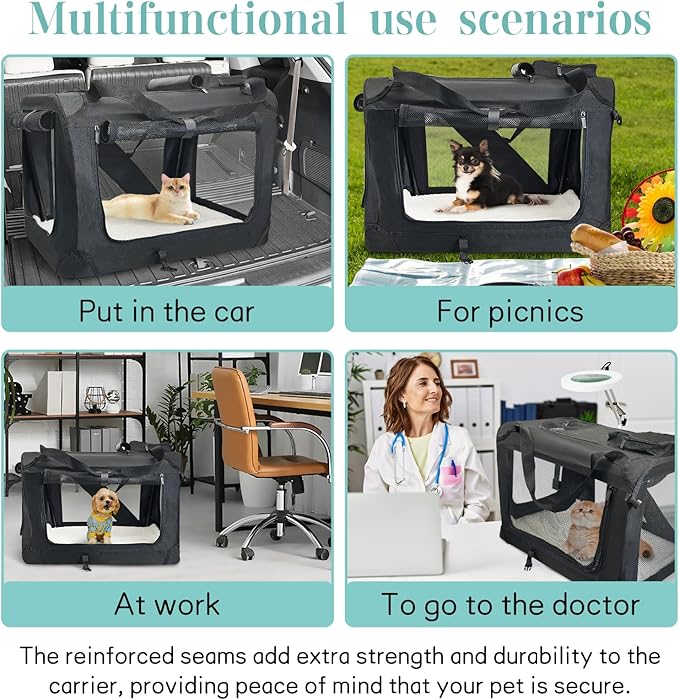 - Multiple Access & Ventilation: Our soft sided pet carrier features four access panels, including a top opening, allowing you to easily load and unload your pet. The carrier also boasts all-around windows with heavy-duty rubber mesh and closable flaps, providing optimum ventilation and maximum sightseeing for your furry friend.