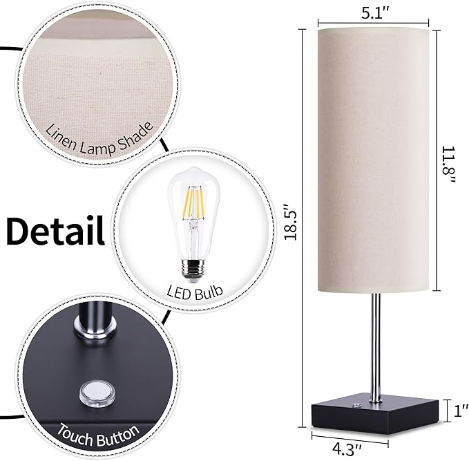 - SIMPLE AND MODERN DECORATION - This touch lamp has a stylish and simple design, perfect for decorating any place in your home, especially bedroom, dormitory, living room, study room, guest room, kids room and so on. The nightstand lamp makes your desktop more tidy, no more worries about messy wires, also ideal for gifts for friends and relatives
