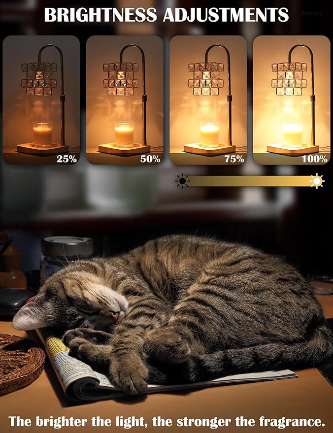 - DIMMER 4 BRIGHTNESS LEVELS: It has four brightness levels to fit different need. The brighter the light, the more heat the bulb emits, therefore the faster the candle melts. It repeatedly melts the candle, release the fragrance naturally and evenly. The duration of fragrance is twice that of burning a candle. Ideal for relaxing when you are doing yoga, reading, partying, working, sleeping, etc.