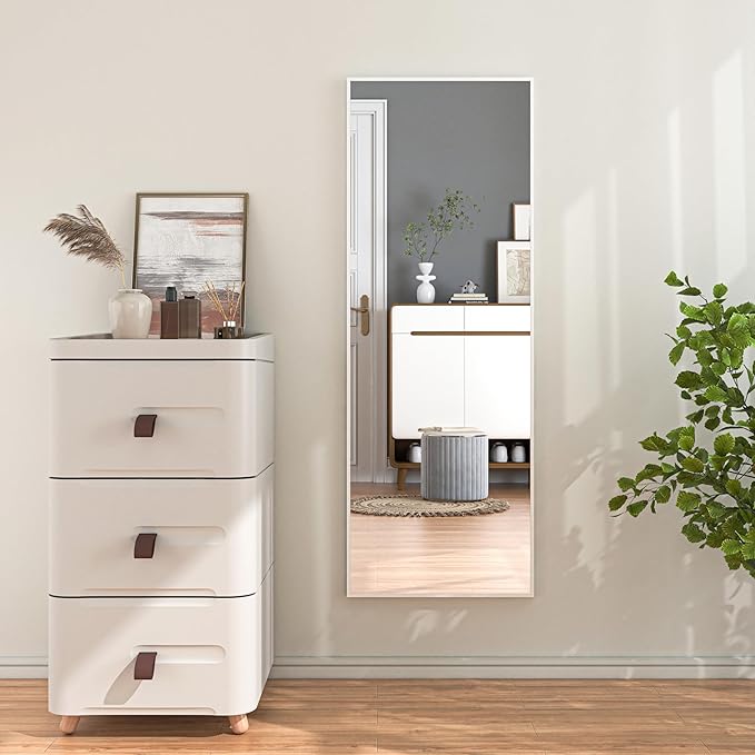 - 【Full Length Mirror】The size of the white door mirror is 44" x 16", it can not only show full body when you need to decide on your outfit or make up, but also provide more expansive visuals and enhances the sense of space.