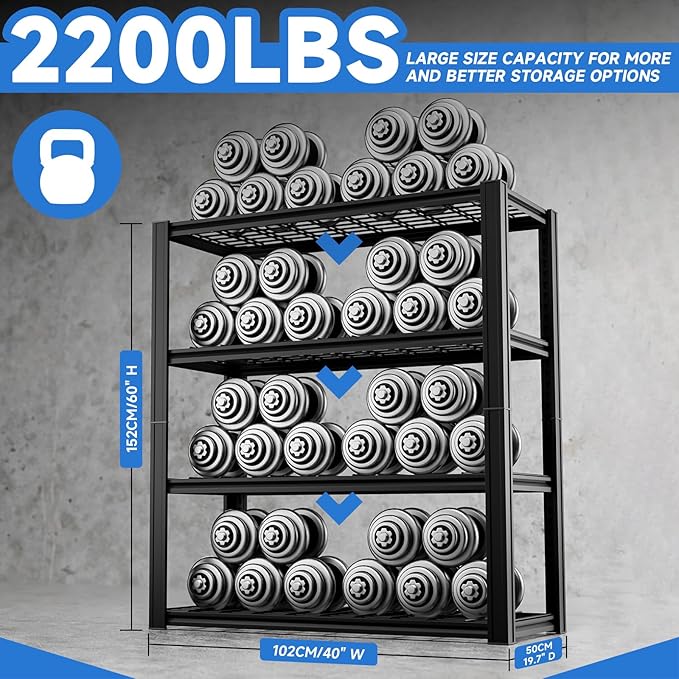 4-Tier 40" W x 19.7" D x 60" H Garage Shelf Heavy Duty Metal Garage Shelving Load 2200LBS Utility Shelves Industrial Rack Adjustable Shelves for Garages Basement Storage Shelves (Black)