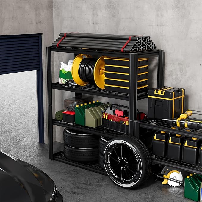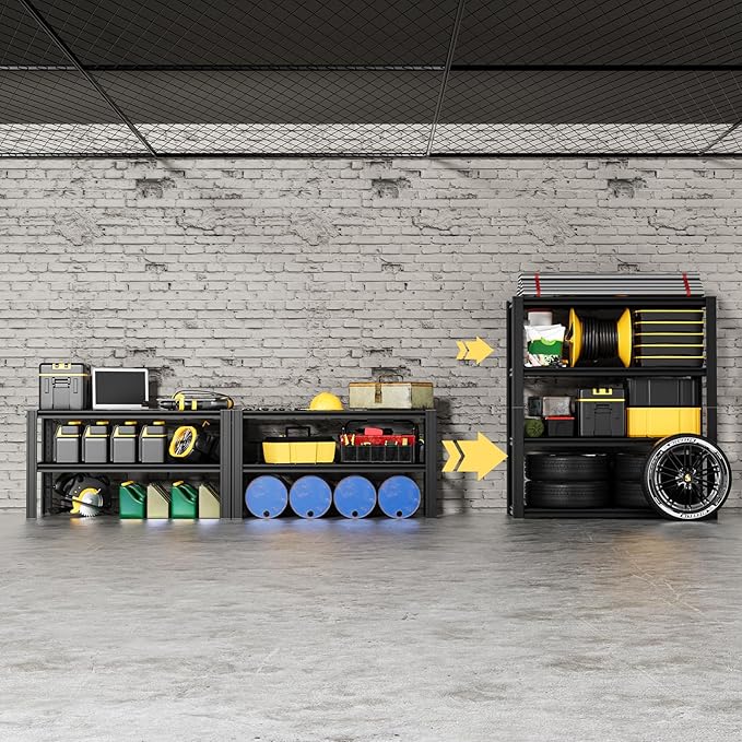 - Solid Strength & Lasting Durability: Experience ultimate garage storage with our storage shelves heavy duty! Made from premium metal, it's built to last. This sturdy industrial racks easily supports all your heavy items. The premium powder coat is water and scratch resistant, ensuring it stays in good condition. Get the best in durability and reliability!