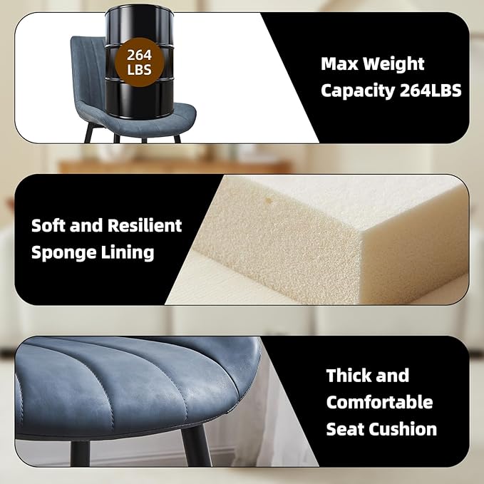 - High Quality Seats: The dining chairs are filled with high-density rebound sponge, which is soft and comfortable. High quality leather surface, smooth and skin friendly, waterproof and wear-resistant, easy to clean stains and water stains.