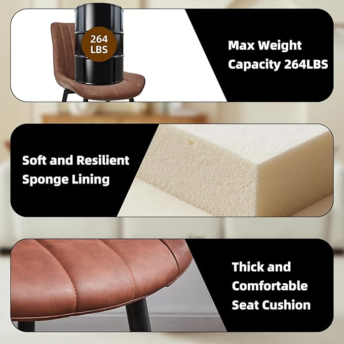 - High Quality Seats: The dining chairs are filled with high-density rebound sponge, which is soft and comfortable. High quality leather surface, smooth and skin friendly, waterproof and wear-resistant, easy to clean stains and water stains.