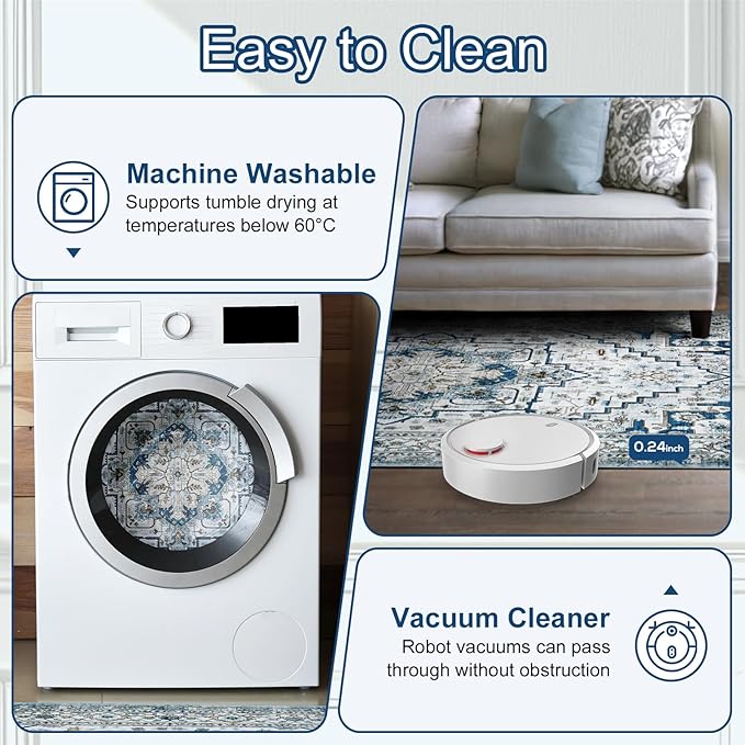 - 【Machine Washable & Easy to Clean】This low-pile rug suits households in various regions and is perfect for all seasons.It can be easily cleaned with a vacuum or carpet brush to eliminate pet hair and dust. The moderate thickness won't obstruct robot vacuums, and it can even be machine washed for a deep clean (supports tumble drying below 60°C)