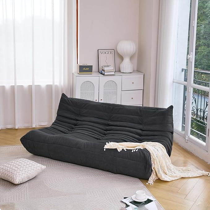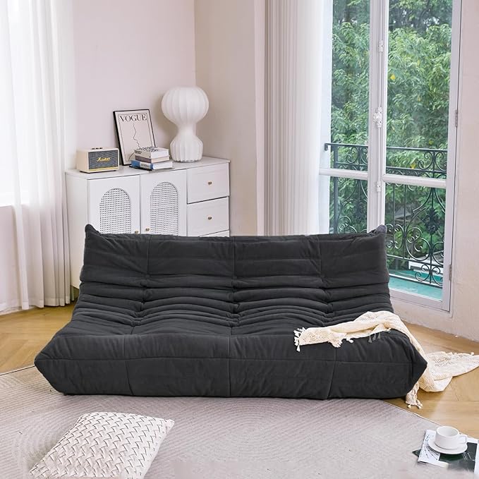 N&V Fireside Chair, Mid Century Armless Floor Sofa, Soft Premium Microfiber Floor Lounge Chair, Foam Sofa Accent Chair for Living Room Bedroom and Office (Black, Three Seater)