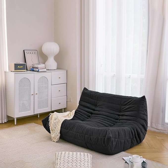 N&V Fireside Mid Century Armless Floor Sofa, Soft Premium Microfiber Lounge Chair, Foam Accent for Living Room Bedroom and Office (Black, Loveseat)