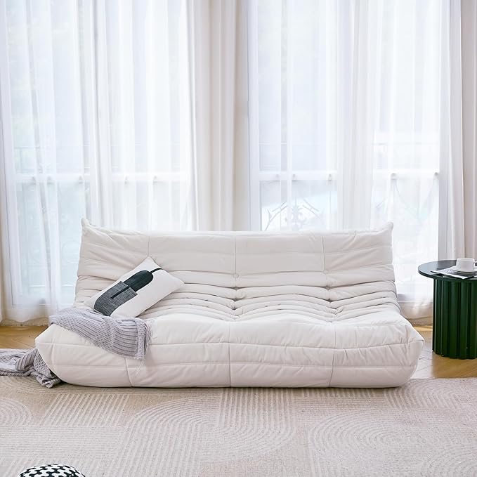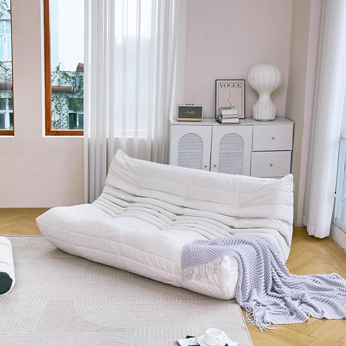 N&V Fireside Chair, Mid Century Armless Floor Sofa, Soft Premium Microfiber Floor Lounge Chair, Foam Sofa Accent Chair for Living Room Bedroom and Office (Ivory, Three Seater)
